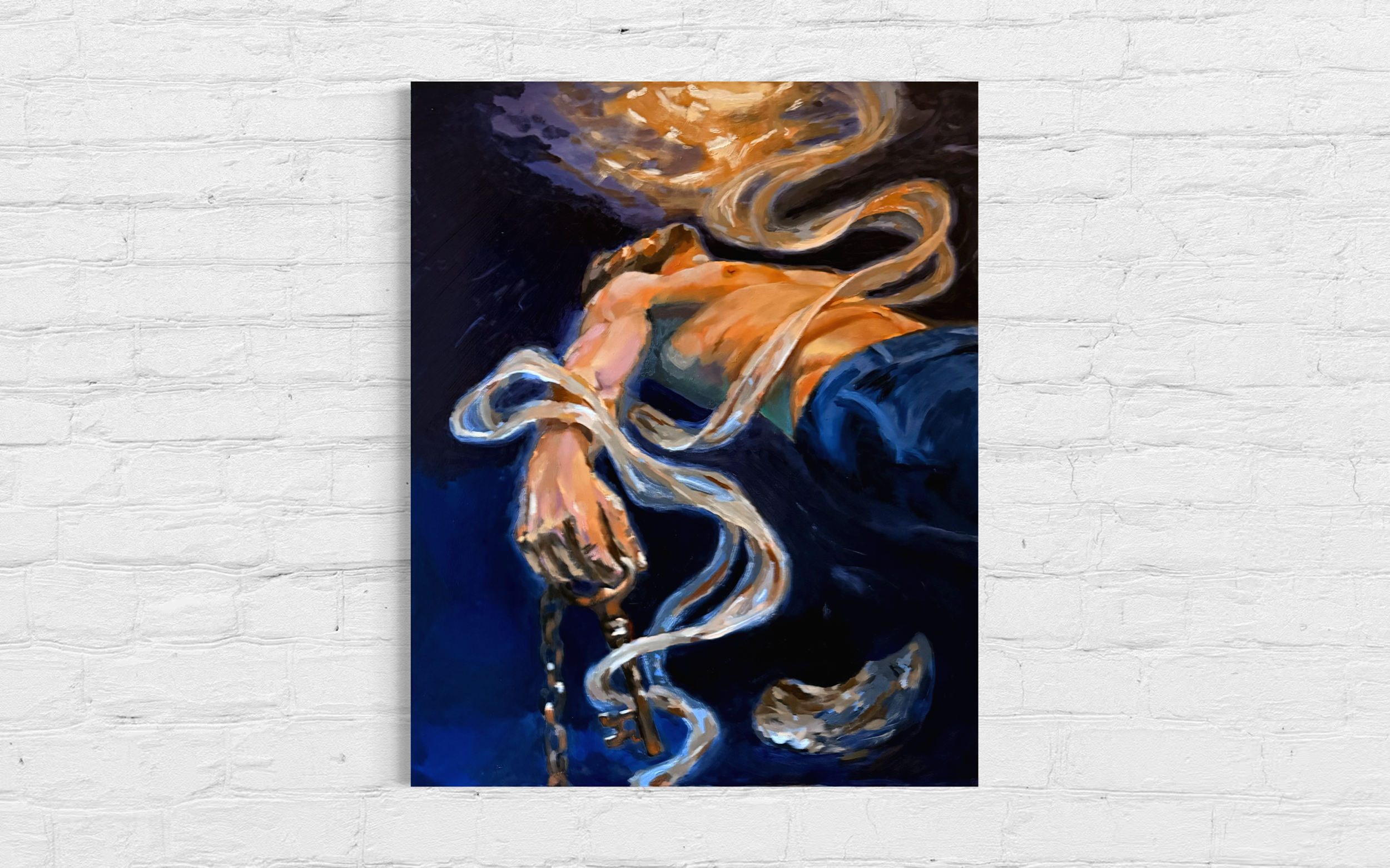 The work avoids literal storytelling. Meaning emerges through gesture, symbols and absence.